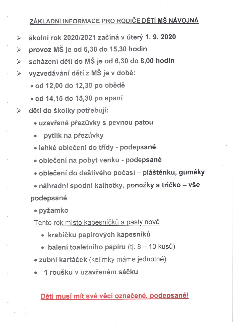 3. 9. 2020 - SCHŮZKA RODIČŮ - viz Úvodní stránka