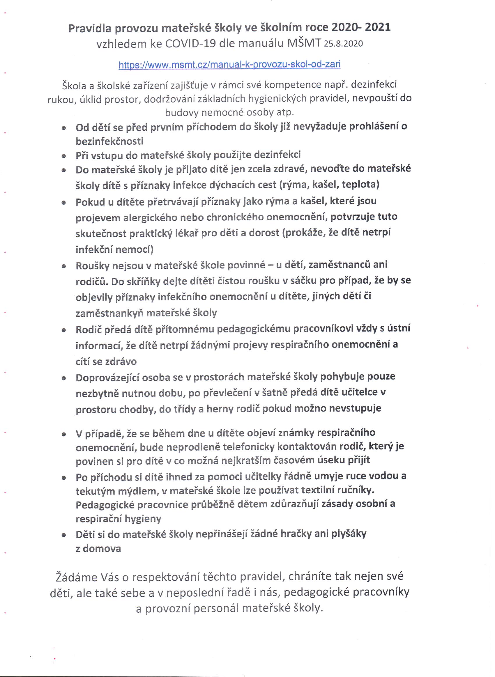 1. 9. 2020 - PRAVIDLA PROVOZU OD 1. 9. 2020 -